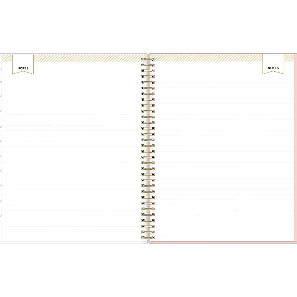 - Features one month per two pages and one week per two pages, with space for notes and quick reference calendars