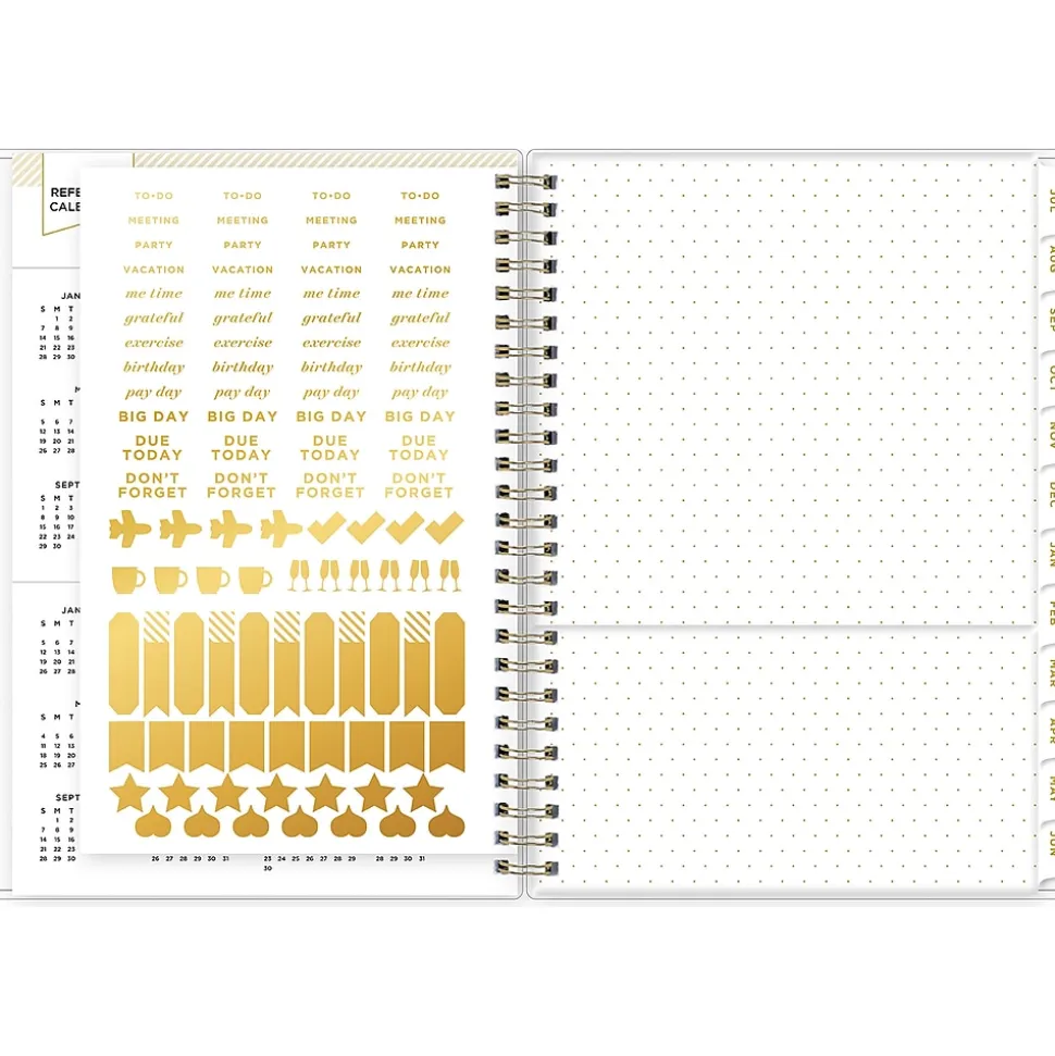 Part planner, part notebook, the Blue Sky Day Designer Climbing Floral Mint planner is your all-in-one solution for school. With 30 pages for notes, weekly pages, and tabbed monthly views, this planner provides ample writing space for work or school. Also includes a storage pocket, stickers, and goal setting pages.