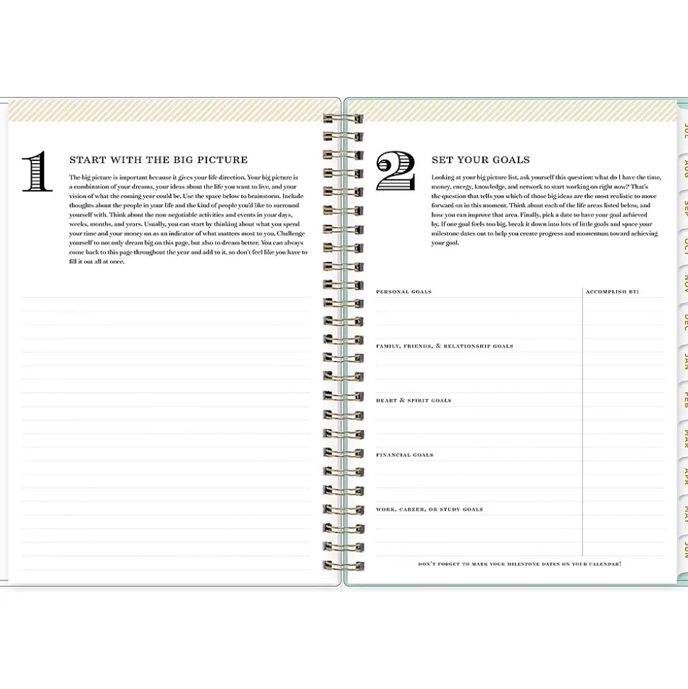 - Offers weekly and monthly spreads with space for notes