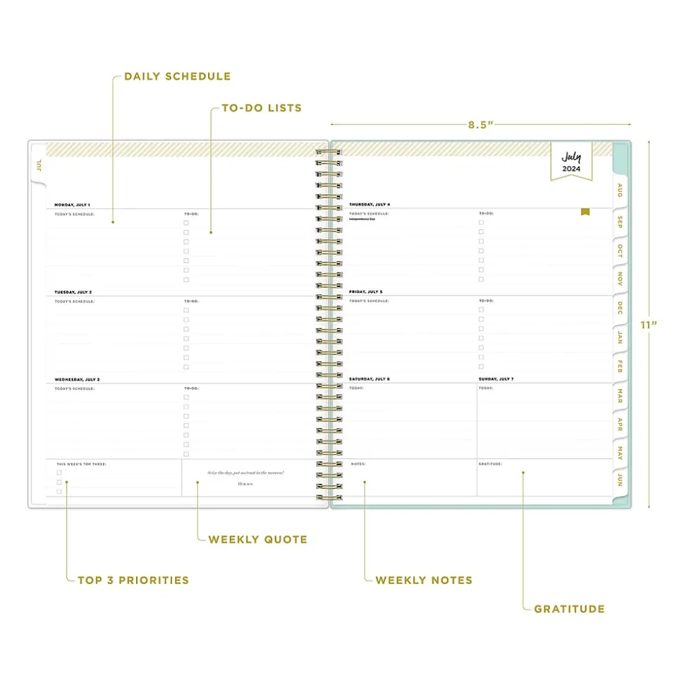2024-2025 Blue Sky Day Designer Flower Field Mint 8.5" x 11" Weekly & Monthly Planner, Plastic Cover, Multicolor (144877)