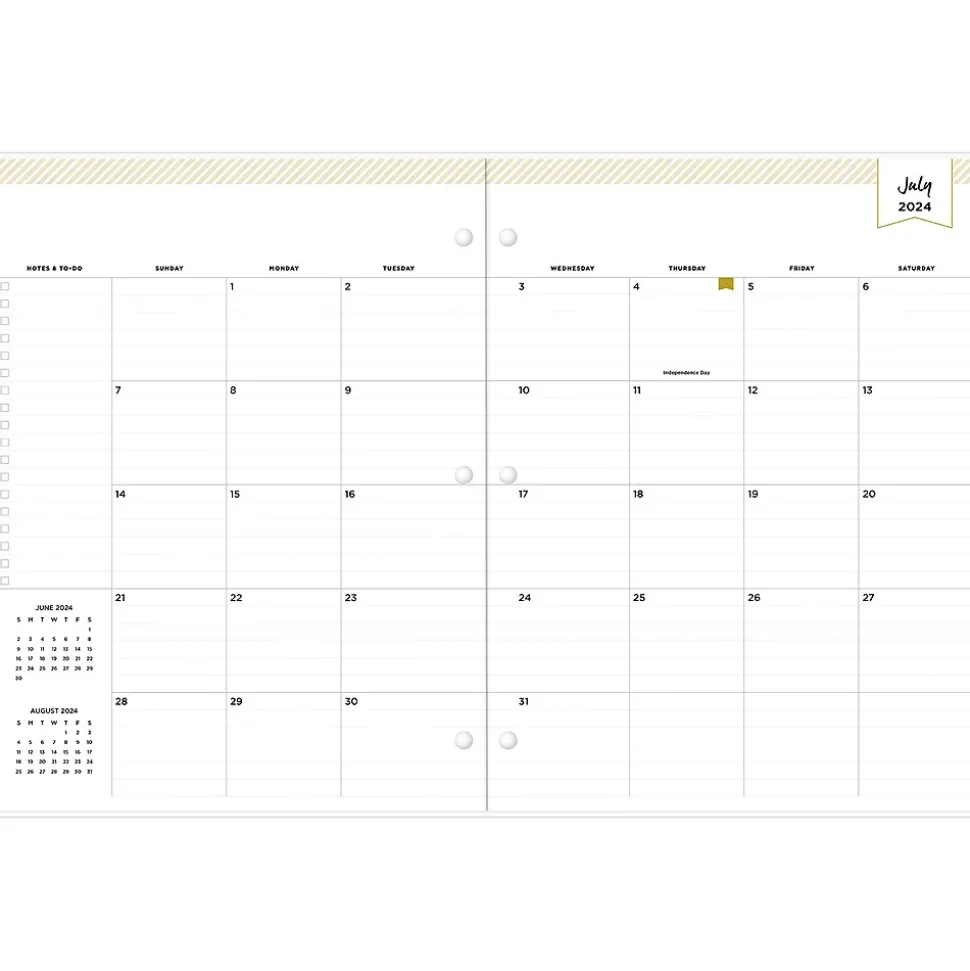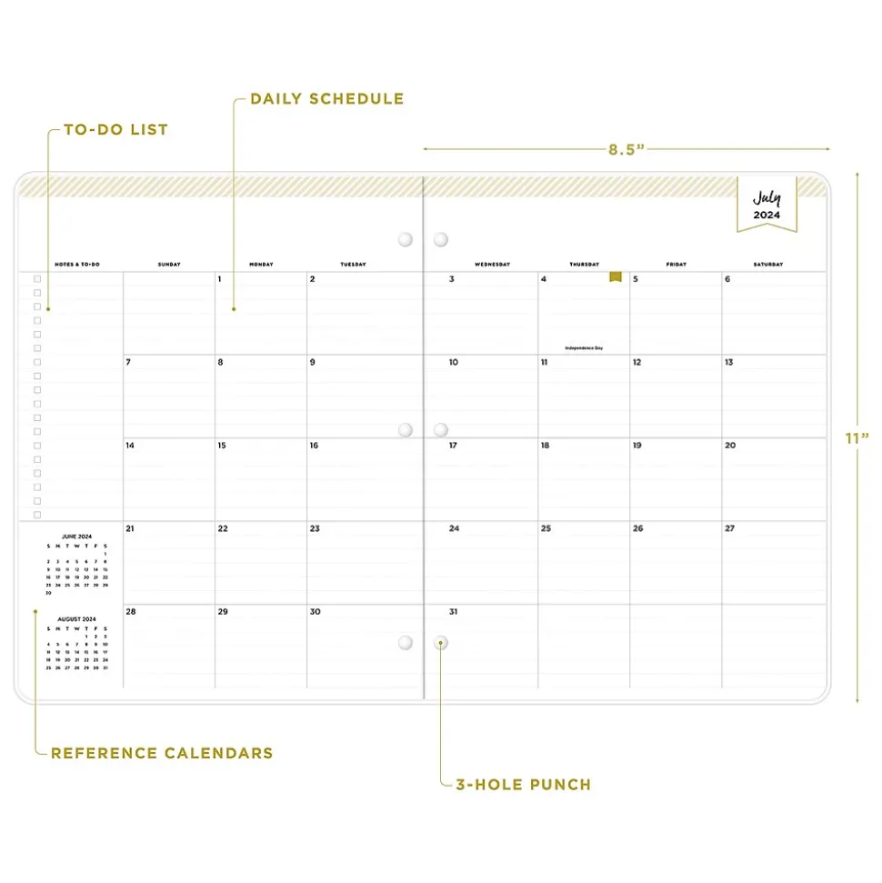 Blue Sky planners always make the grade. A valuable tool to organize your days, the Blue Sky Day Designer Spotty Small Gold monthly academic planner has a stapled spine for snag-free storing and a three-hole punch for snapping into your binder.