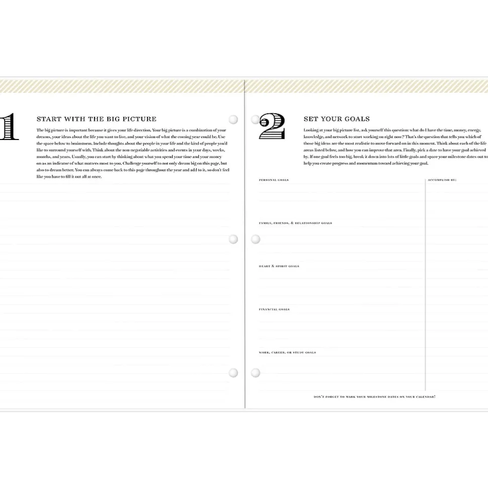 - Yearly overview and goal-setting pages