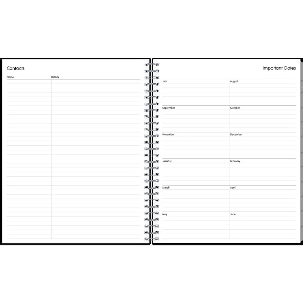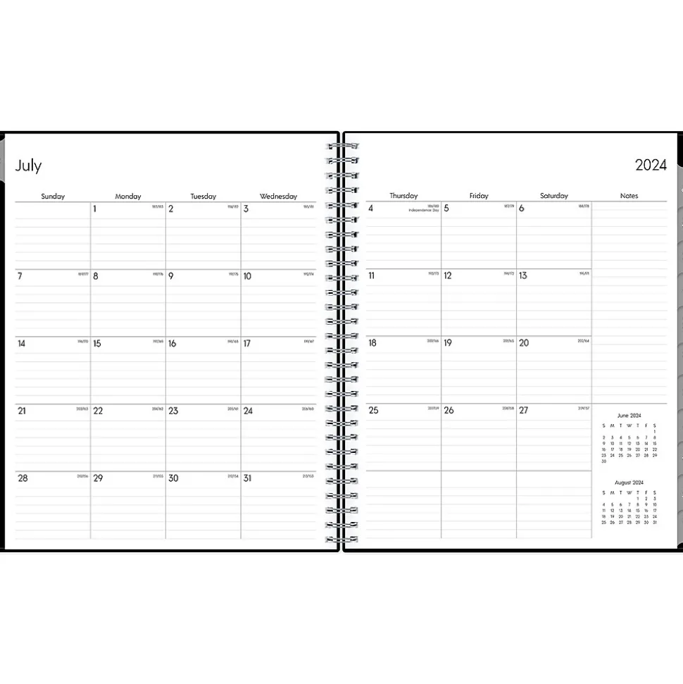 - Offers one month per two pages with space for notes and quick reference calendars