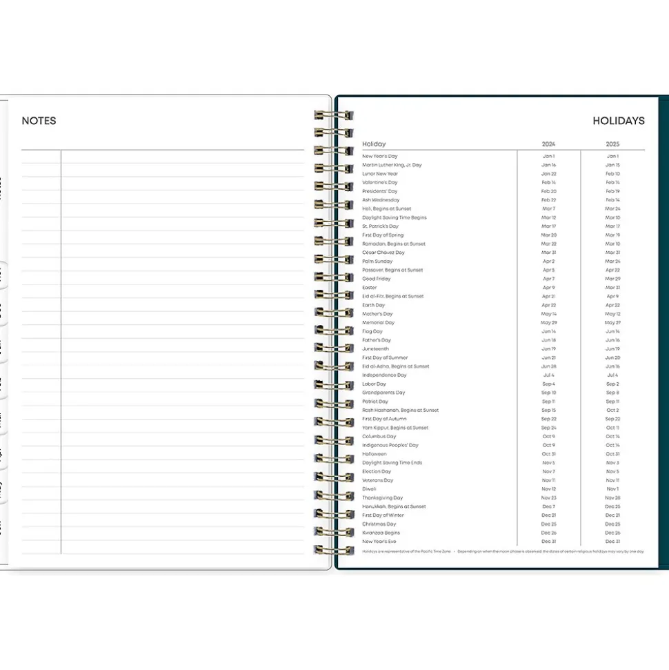- 30 notes pages, contacts, goals, holidays, and important dates