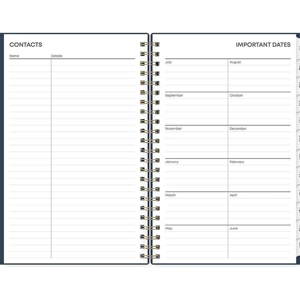 - Use a storage pocket and extra pages for contacts, goals, holidays, and important dates