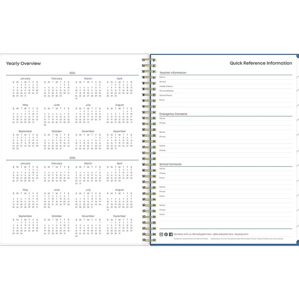 Blue Sky teacher lesson planners keep you focused and organized. The Raquel teacher lesson planner has weekly planning space for up to nine classes or subjects. The monthly pages are tabbed and offer plenty of room for notes. Extras include a storage pocket and pages for weekly activities, class birthdays, and holidays.
