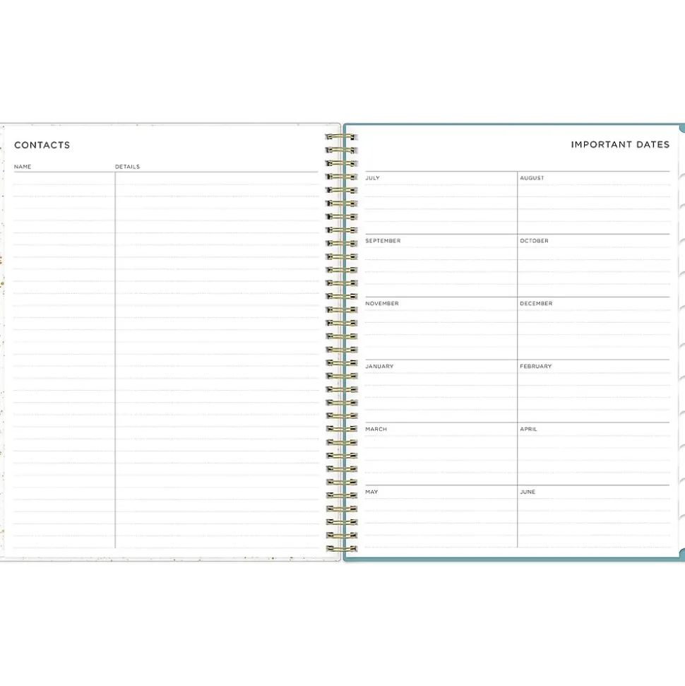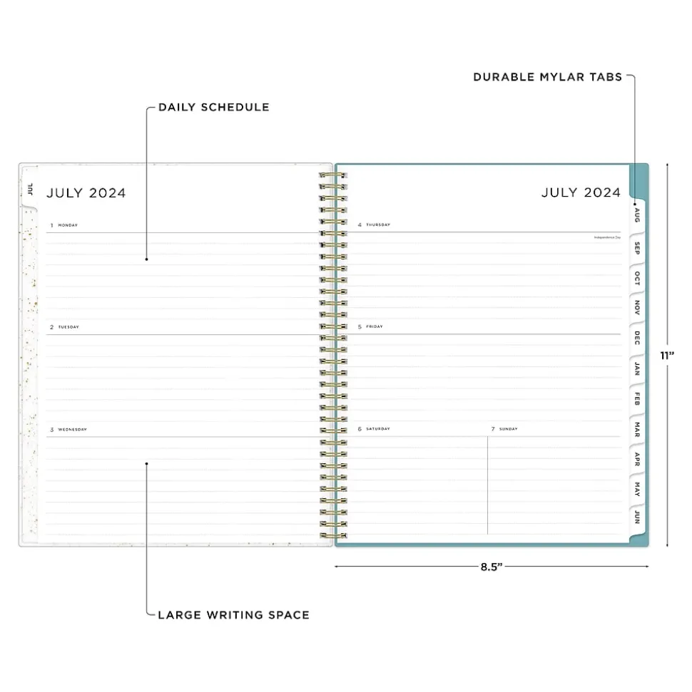A valuable tool to organize your days, this Blue Sky Splatter Dot Jade large planner helps you set goals, track progress, and make the most of your time.