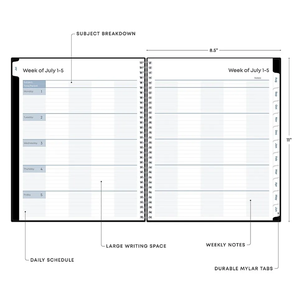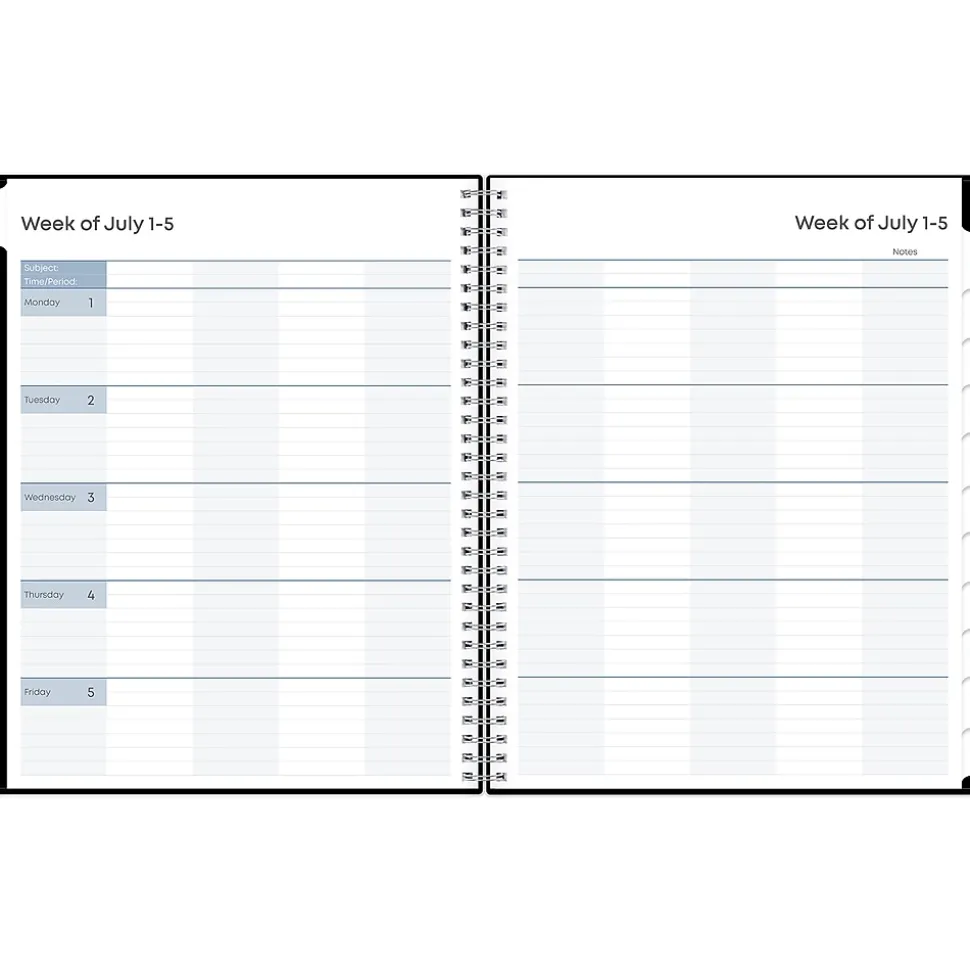 2024-2025 Blue Sky Teacher Lesson 8.5" x 11" Academic Weekly & Monthly Planner, Plastic Cover, Black (134433-A25)