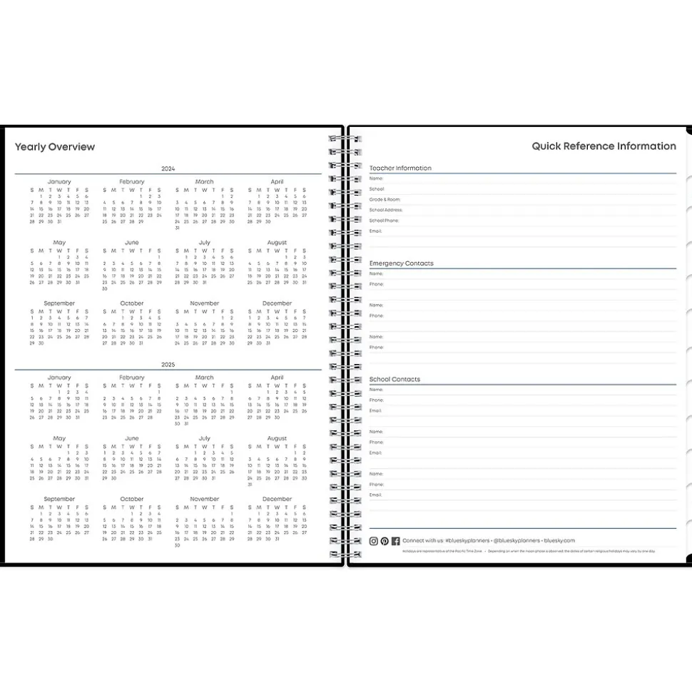2024-2025 Blue Sky Teacher Lesson 8.5″ x 11″ Academic Weekly & Monthly Planner, Plastic Cover, Black (134433-A25)
