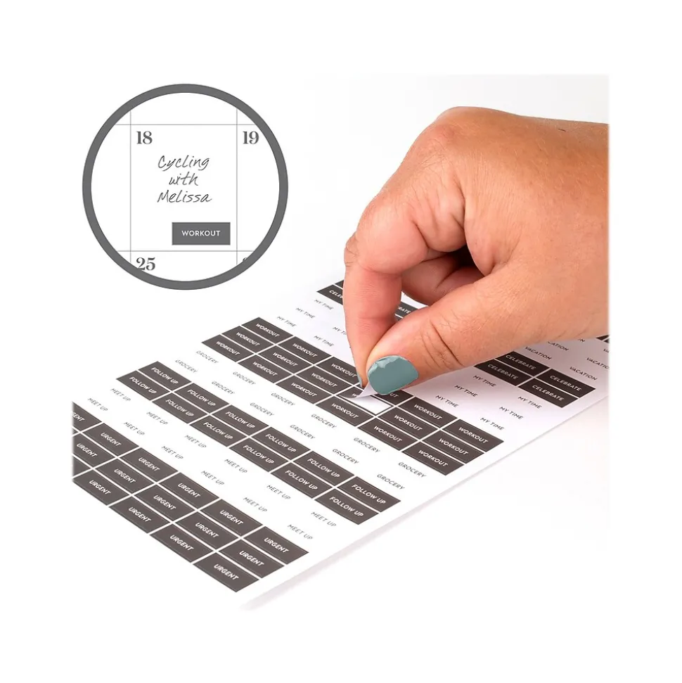 - Special sections include dot grid pages for ideas, habit tracking and more, note-taking pages, and a sticker sheet to help you label your plans