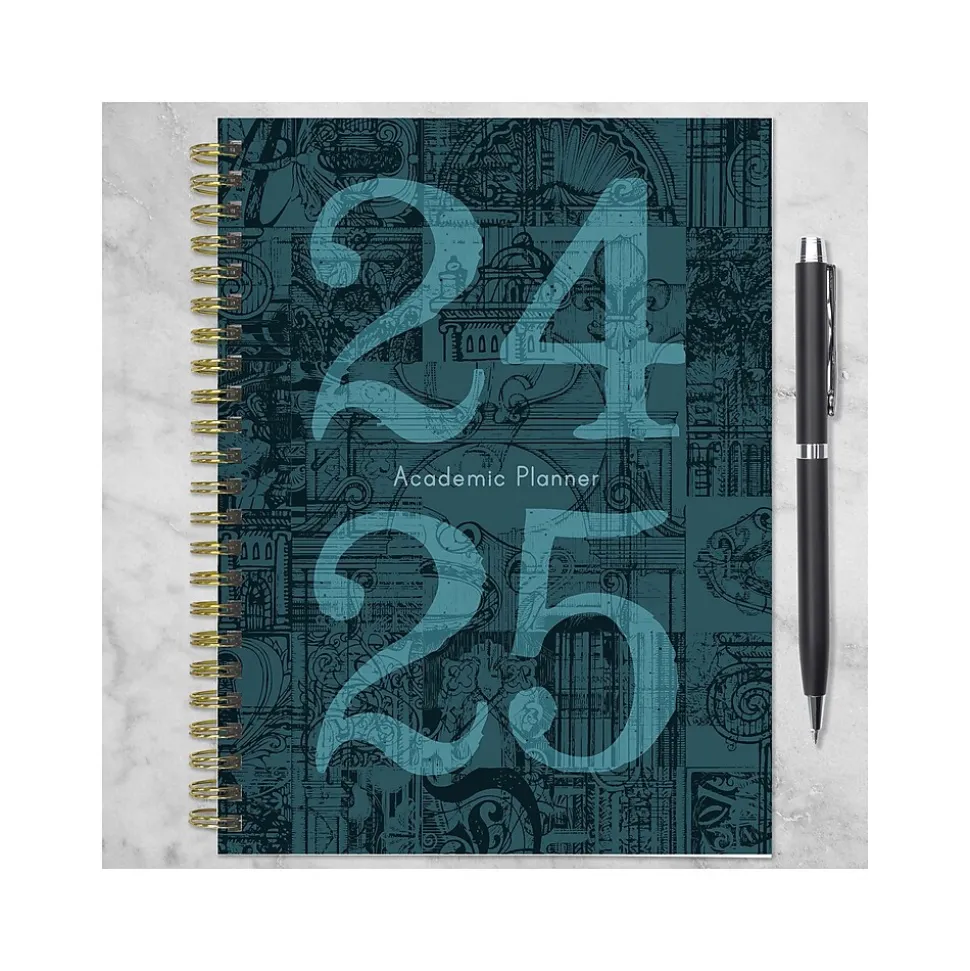 - Weekly and monthly academic planner covers a 12-month date range from July 2024 to June 2025