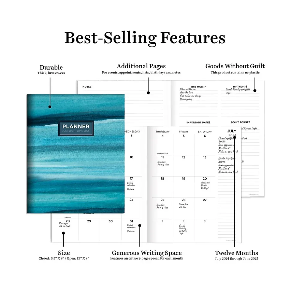 The TF Publishing Blue Watercolor medium monthly planner will keep you organized everywhere you go. The monthly grids provide ample room for all your important information, featuring an entire spread for each month, a full-year view, and additional monthly pages for events, appointments, and notes.