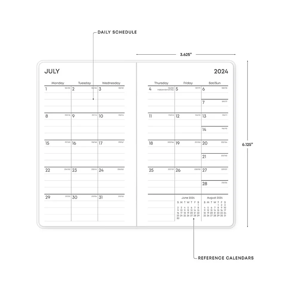 Plan on the go with a tiny planner that fits in your coat pocket. The Blue Sky Jett monthly pocket planner has a stapled spine for snag-free stowing in your pocket or bag. Enjoy 24 months of monthly views, extra notes pages, and pages for your goals, contacts, and important dates.