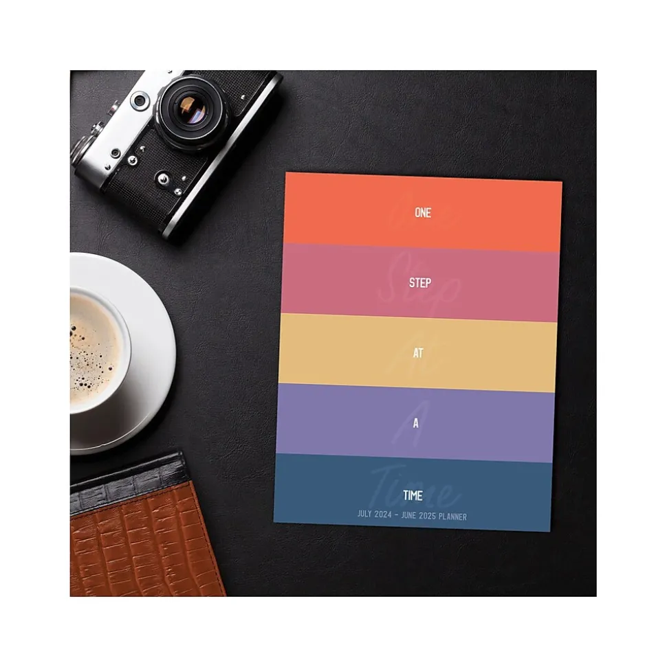 Every great journey starts with a single step. Let warm jewel-tone stripes evoke the confidence and integrity every leader needs to begin. The Willow Creek One-Step Stripe academic monthly planner is a bold reminder to manifest your best intentions and take the July 2024 to June 2025 academic year one step at a time.