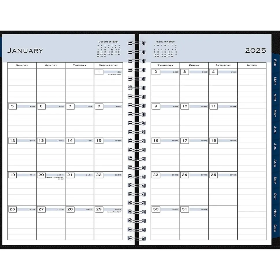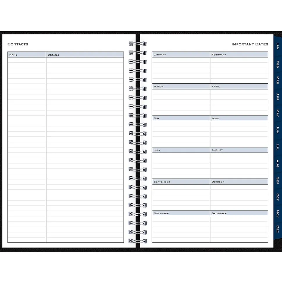 - Offers one week per two pages and one month per two pages, with space for notes and quick reference calendars