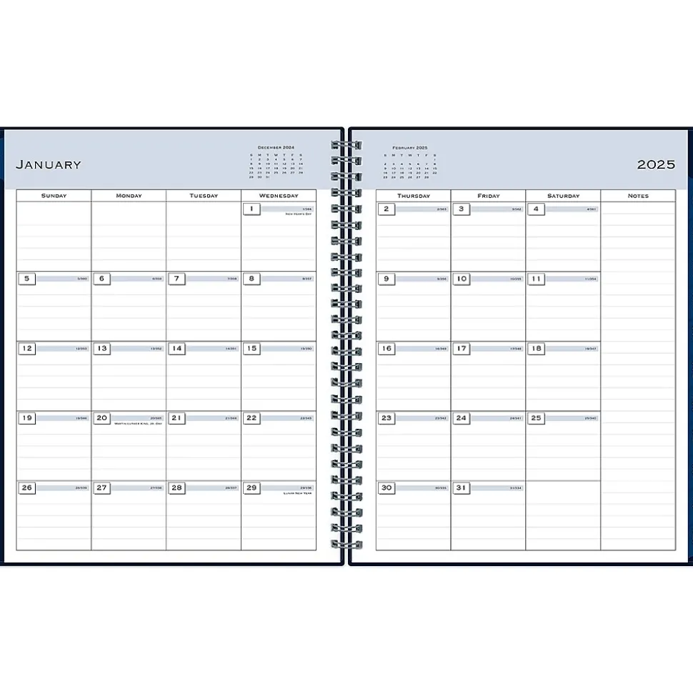 Block out time for meetings with a professional appointment book from Blue Sky. Perfect for office schedules or busy individuals, this 2025 appointment book lets you plan every day of the year in 15-minute increments. Vertical weekly views start at 7:00 a.m. and end at 9:45 p.m.