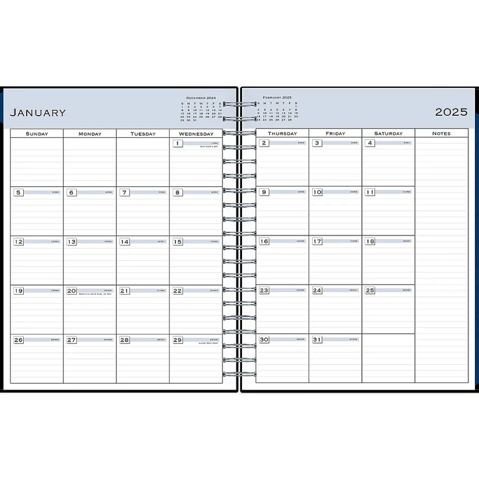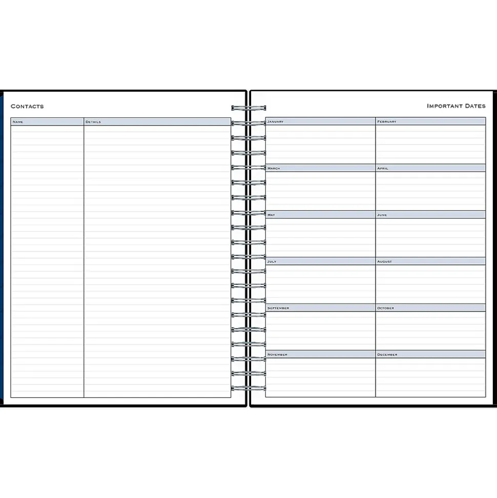 - Daily pages with hourly slots from 7:00 a.m. to 7:00 p.m. with plenty of room for notes (weekends appear on the same page); monthly spreads feature ruled daily blocks, space for notes, and quick reference calendars