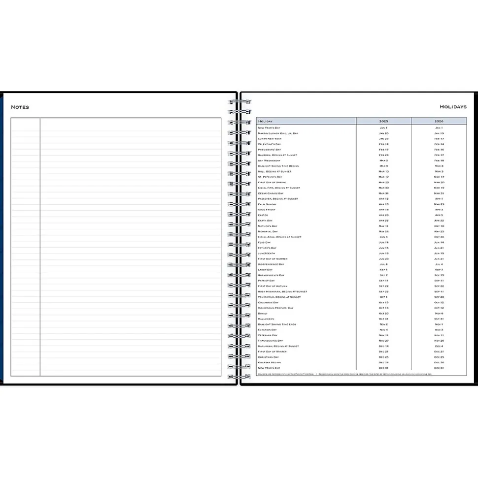 - Offers one month per two pages, with space for notes and quick reference calendars