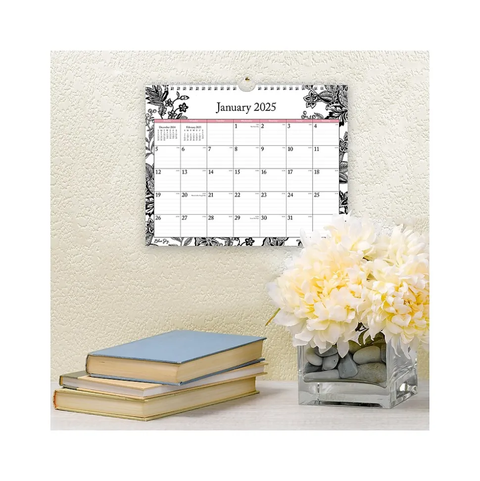 Made for 2025, the Blue Sky Day Designer Analeis wall calendar accentuates any room. Easy to read with a large font, this calendar is a perfect tool to track deadlines and birthdays. Enjoy high-quality white paper, large text, and hassle-free hanging with a sturdy hook.