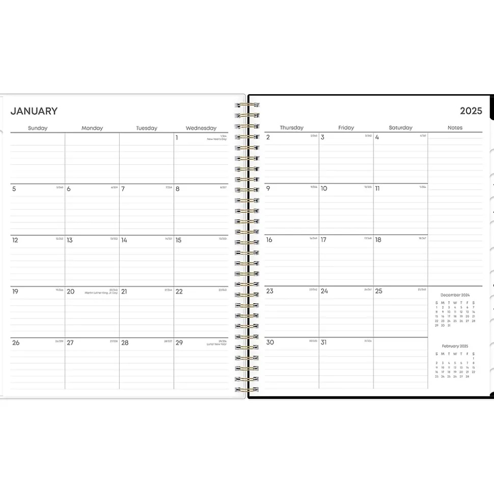 A simple planner with monthly calendars and a clear pocket cover. Track events with the Baccara Dark 2025 monthly planner from Blue Sky, featuring 12 tabbed monthly views and plenty of room for notes.