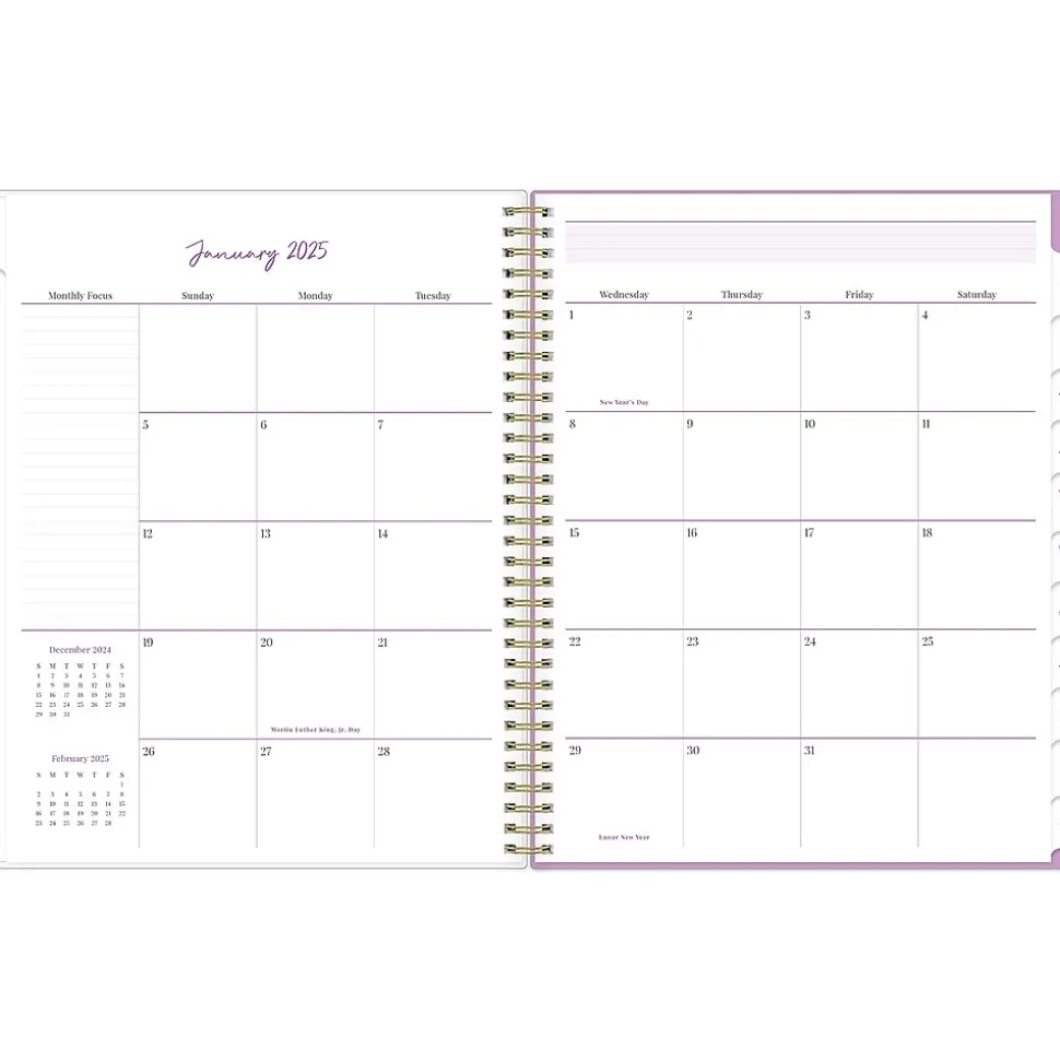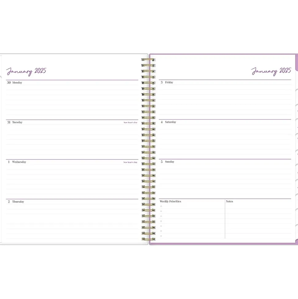 - Features two-page weekly and monthly spreads, with space for notes and quick reference calendars