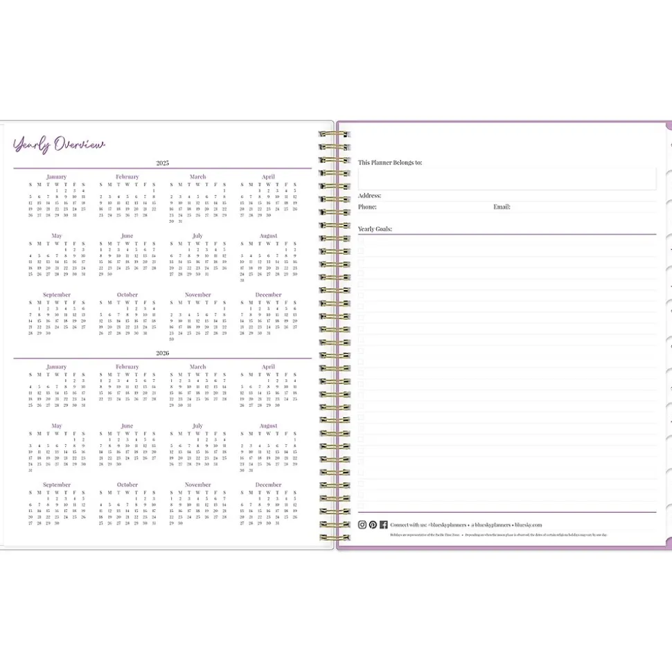 Organize tasks and time with the 2025 Citrus Sunrise weekly and monthly planner from Britt Mills for Blue Sky. It features a clear storage pocket to keep everything together and includes weekly layouts, tabbed monthly views, and notes pages to help you manage your schedule and achieve your goals.