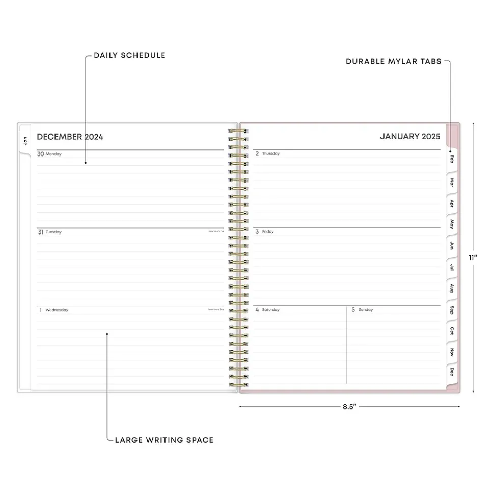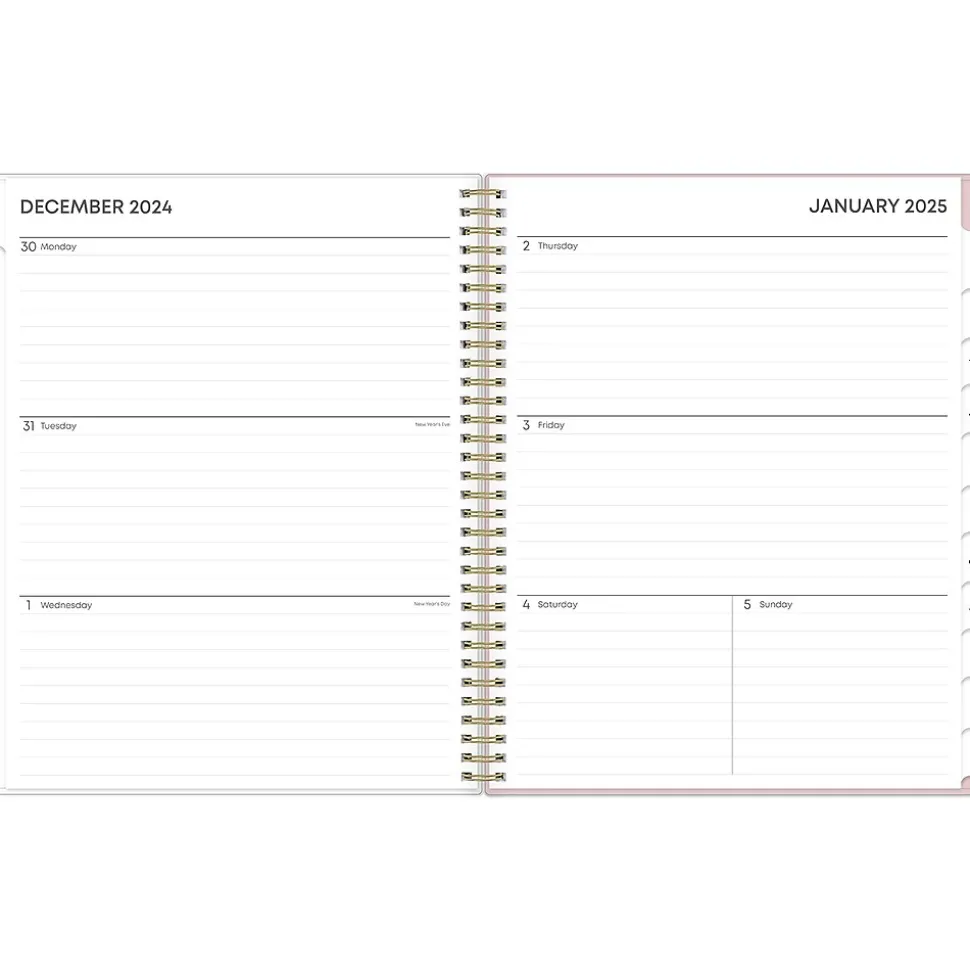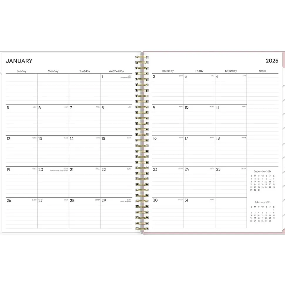 - Features two-page weekly and monthly spreads, with space for notes and quick reference calendars