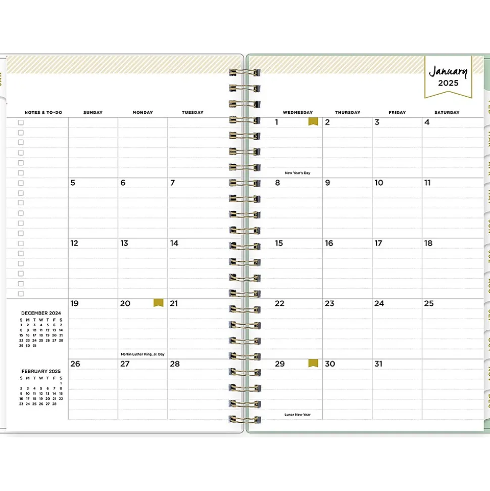 - Features two-page weekly and monthly spreads, with space for notes and quick reference calendars