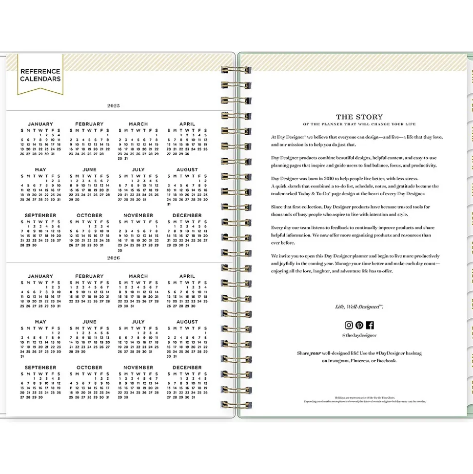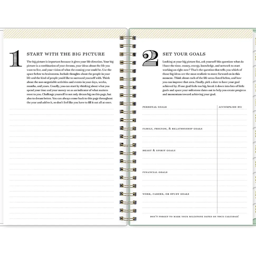 Day Designer for Blue Sky offers an elegant place to plan your year. With a customizable clear pocket cover, goal-setting worksheets, and outstanding weekly layouts, the 2025 Arcadia planner from Day Designer for Blue Sky helps you prioritize tasks and stay organized. It includes gold-tone foil stickers and a storage pocket for a well-designed year.