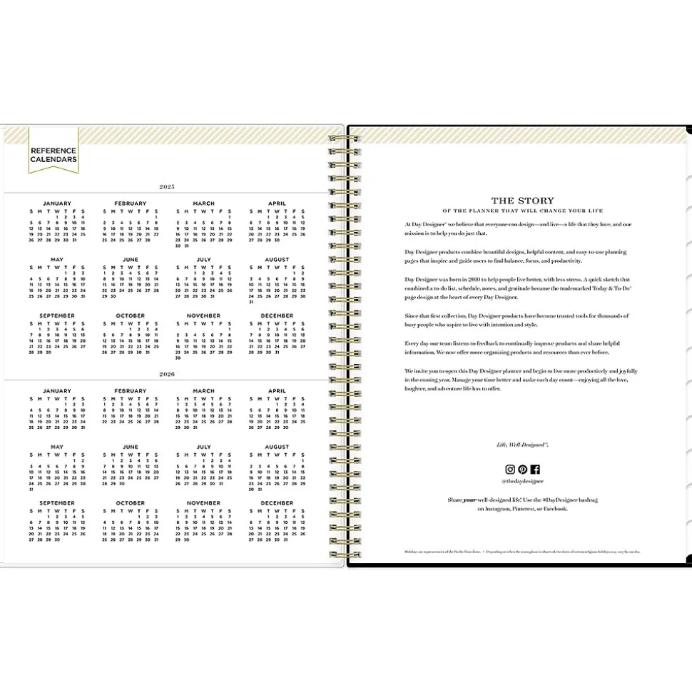 - Features two-page weekly spreads, with space for notes and quick reference calendars