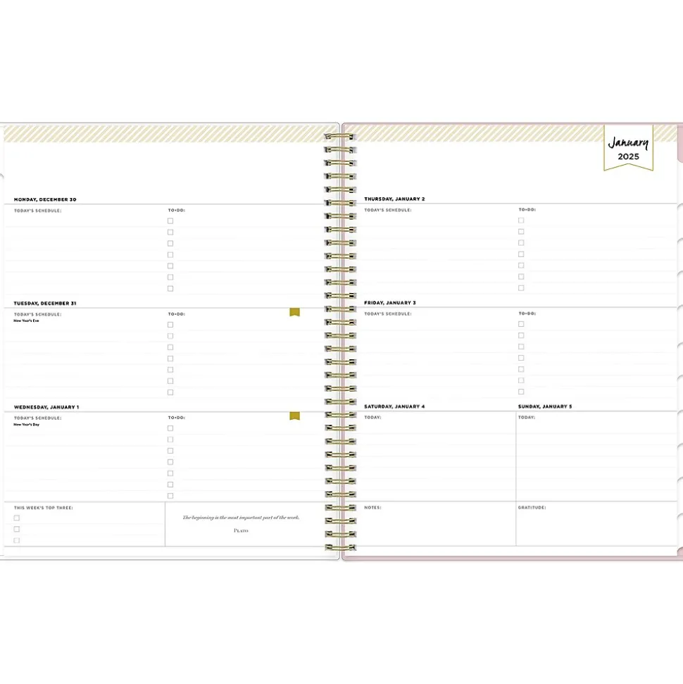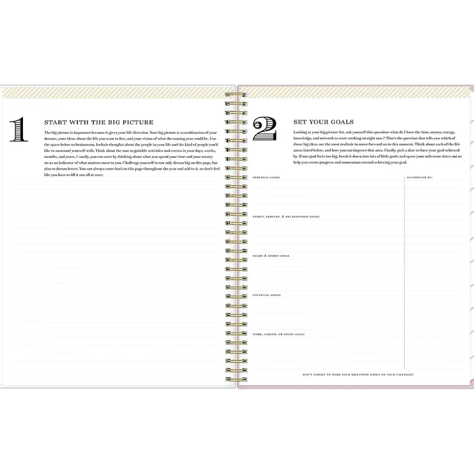 Day Designer for Blue Sky offers an elegant place to plan your year. With a customizable clear pocket cover, goal-setting worksheets, and outstanding weekly layouts, the 2025 Breeze planner from Day Designer for Blue Sky helps you prioritize tasks and stay organized. It includes gold-tone foil stickers and a storage pocket for a well-designed year.