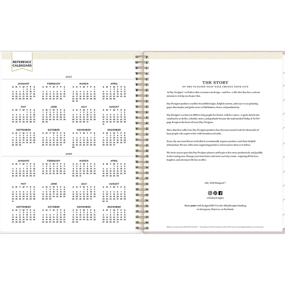 - Features two-page weekly spreads, with space for notes and quick reference calendars