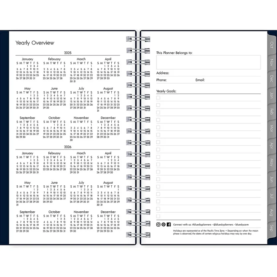 2025 Blue Sky Enterprise 3.63″ x 6.13″ Weekly & Monthly Planner, Plastic Cover, Navy (147976)