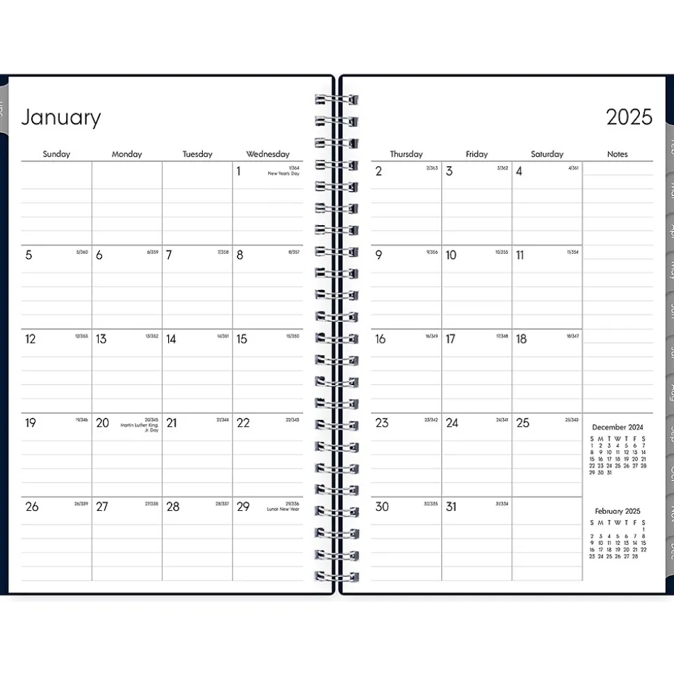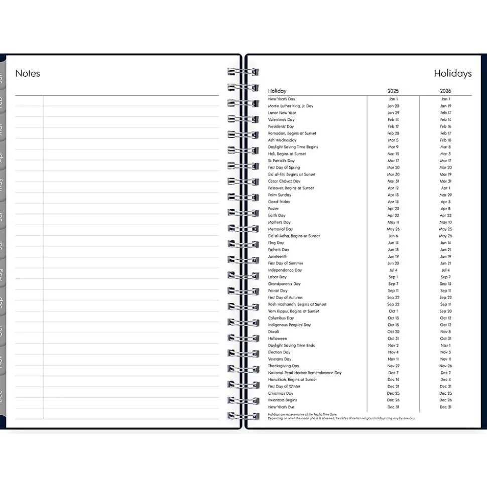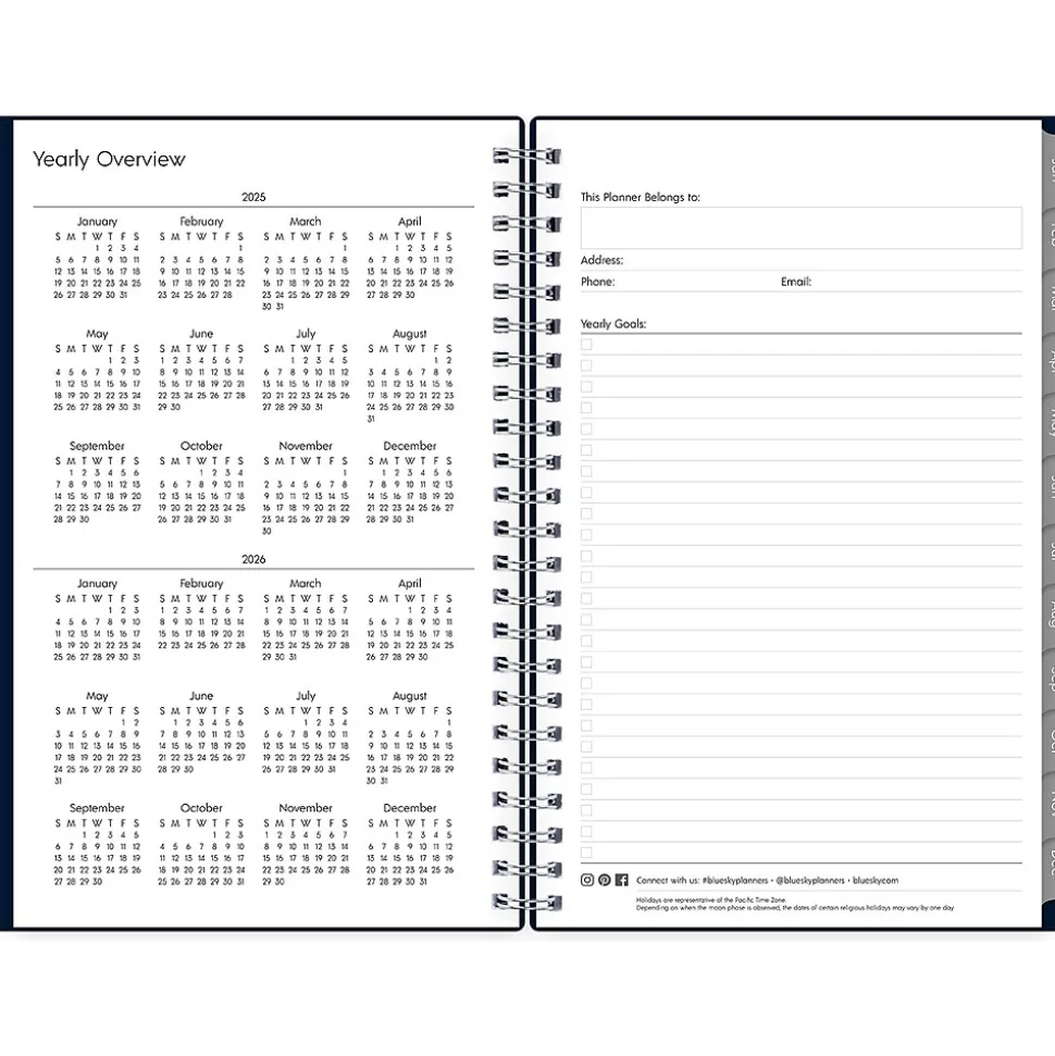 Organize your tasks and time with this Enterprise 2025 weekly and monthly planner from Blue Sky. Use the ruled weekly layouts, tabbed monthly views, and notes pages to manage your schedule and achieve your goals.