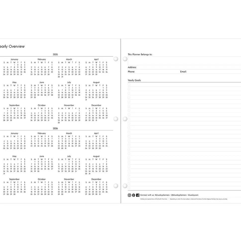 Snap this 2025 Blue Sky Enterprise monthly planner into your binder or folder so you can access your appointments, tasks, and goals with ease. The planner has a light, flexible cover, stapled spine, and a three-hole punch for use with most full-size binders.