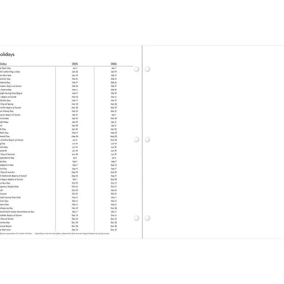 - Three-hole punched for use with most full-size binders