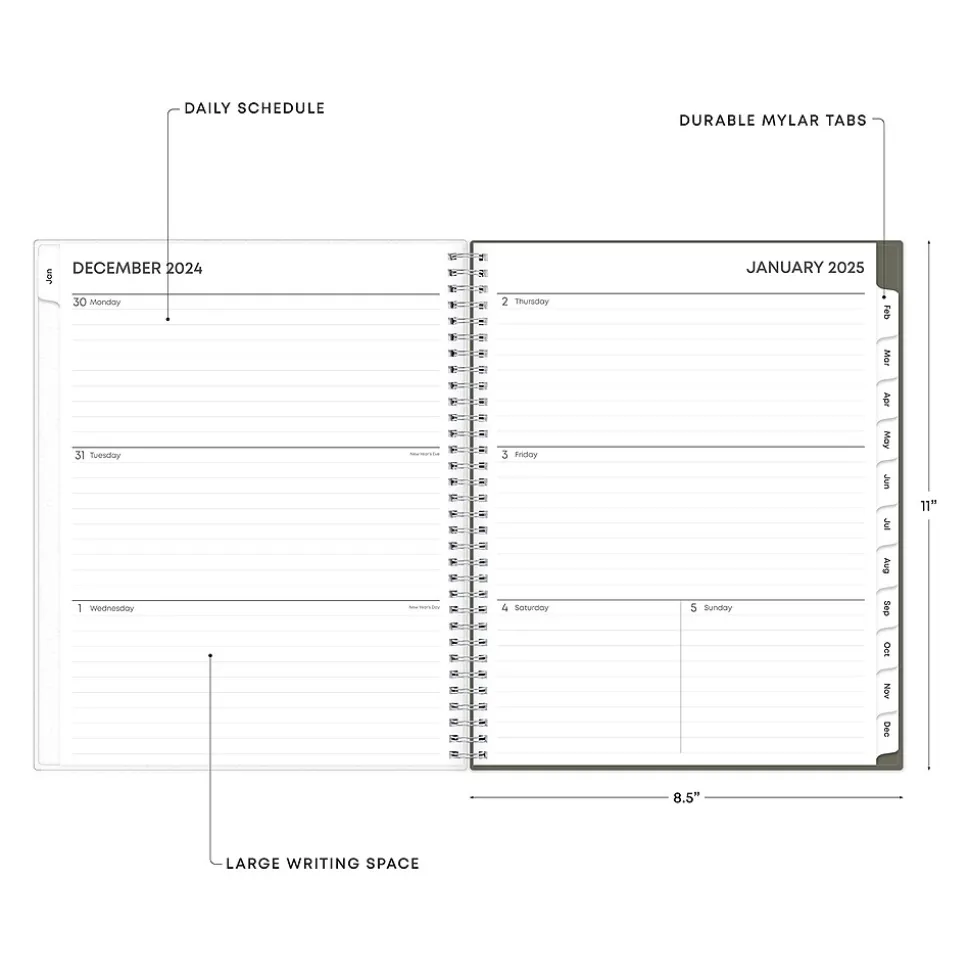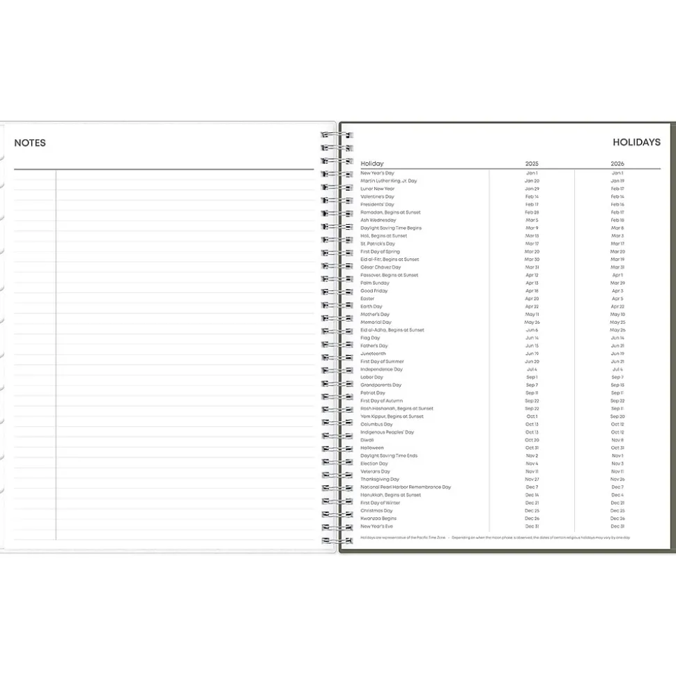 - Features two-page weekly and monthly spreads, with space for notes and quick reference calendars