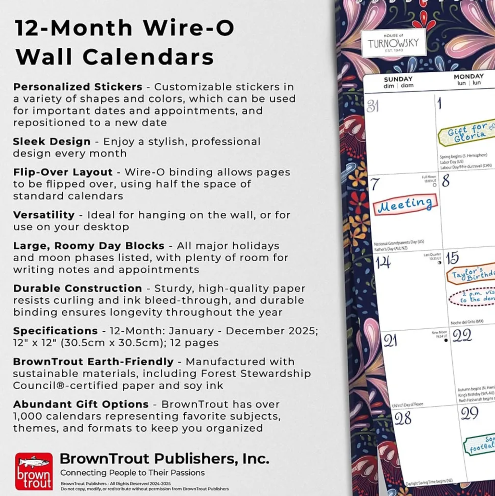- Abundant Gift Options – BrownTrout has over 1,000 calendars representing favorite subjects, themes, and formats to keep you organized