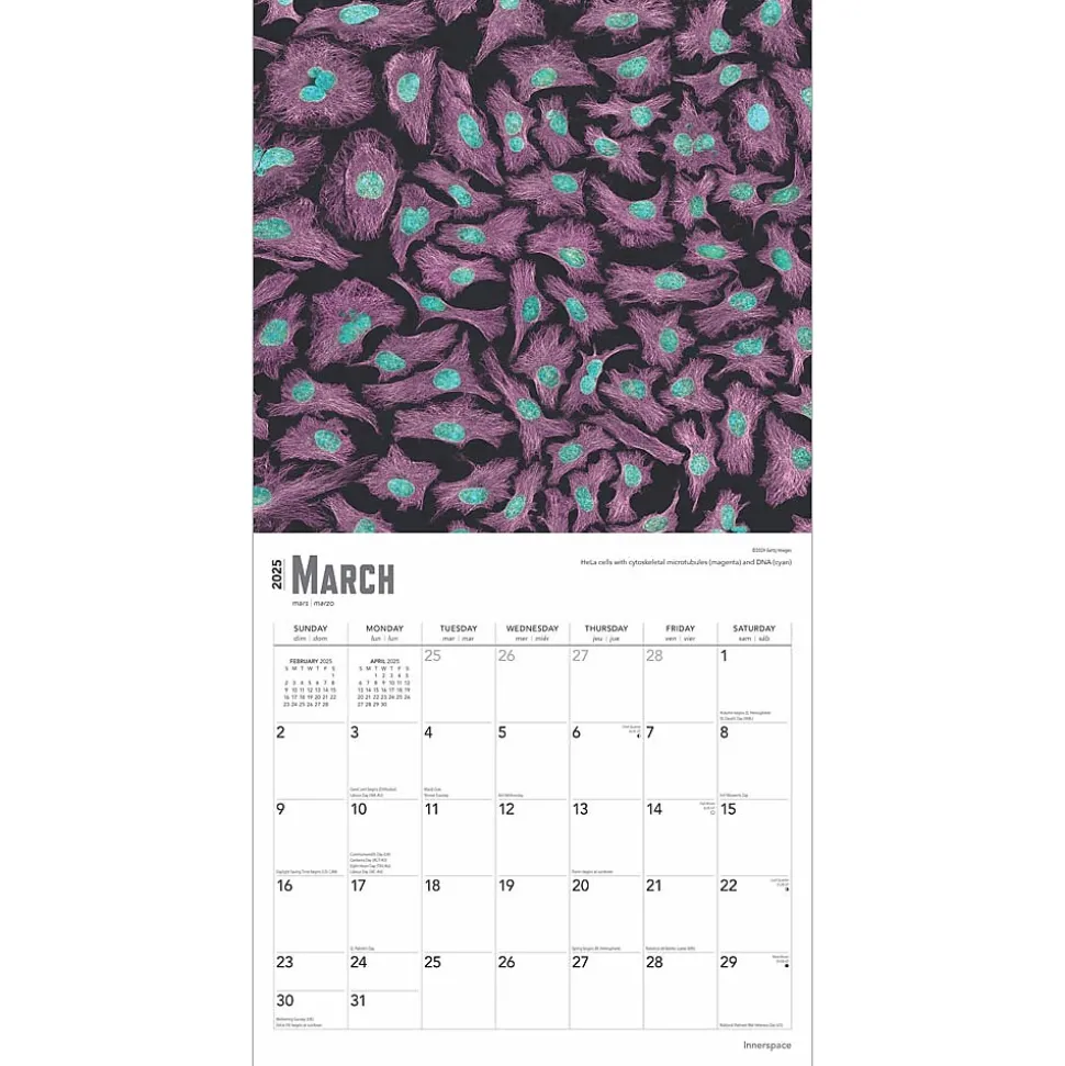 The human body is teeming with unfathomable wonder, complexity, and beauty. What we can see with the naked eye is just the tip of the iceberg. Under the surface, there are entire microscopic worlds, from the layers of your retina to the patterns of an invading virus. Explore the hidden universe under your skin, and throughout the natural world, in this colorful calendar.