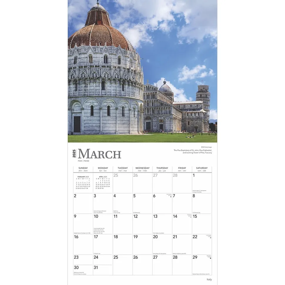 Italy is a country of enormous beauty, rich history, fine art, and wonderful food. Whether you are floating along the canals of Venice, strolling around Rome, bicycling through the Tuscan hills, or driving down the coast, Italy will capture your heart and excite your senses. Those who adore Italia will treasure this gorgeous calendar.