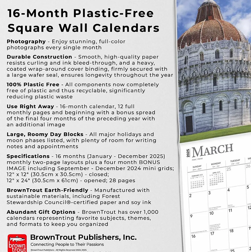 - Abundant Gift Options – BrownTrout has over 1,000 calendars representing favorite subjects, themes, and formats to keep you organized