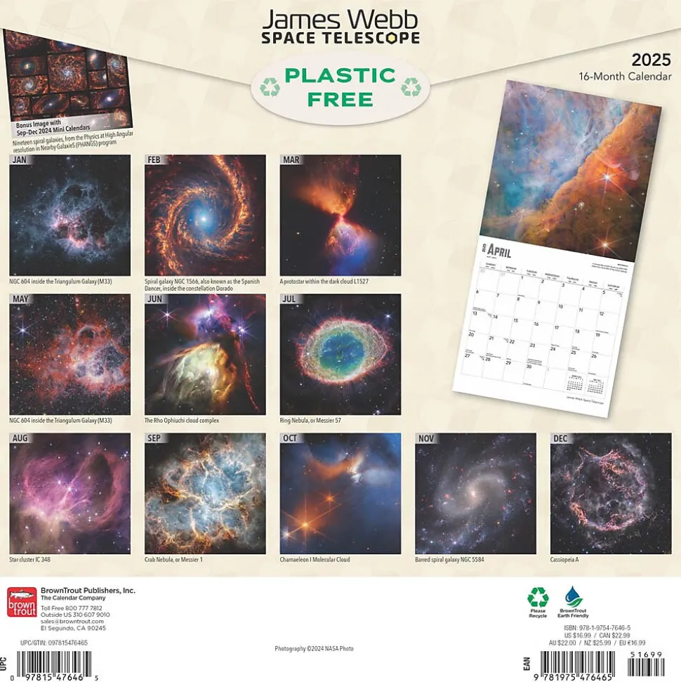 A must have, this calendar showcases the first amazing images from the James Webb Space Telescope released starting in July of 2022. The Webb Telescope is the most complex and powerful space science telescope built to date, and what it can capture is out of this world! Be awed by the phenomenal images of the dynamic, ever-changing majesty outside of our planet. From nebulae to planets to galaxies, marvel at the wonders of outer space throughout the year.