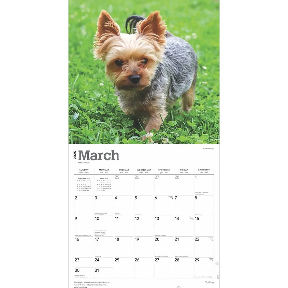 Yorkshire Terriers may be small and innocent looking, but they are surprisingly strong and intelligent. In fact, they were once used to catch rats in the clothing mills of England. With colorful photographs of adorable Yorkies, this calendar is sure to please anyone who loves these delightful dogs.