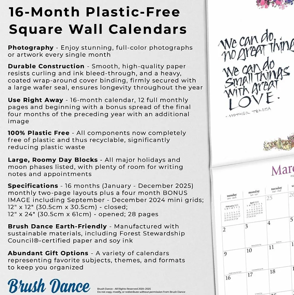 - Brush Dance Earth-Friendly – Manufactured with sustainable materials, including Forest Stewardship Council®-certified paper and soy ink