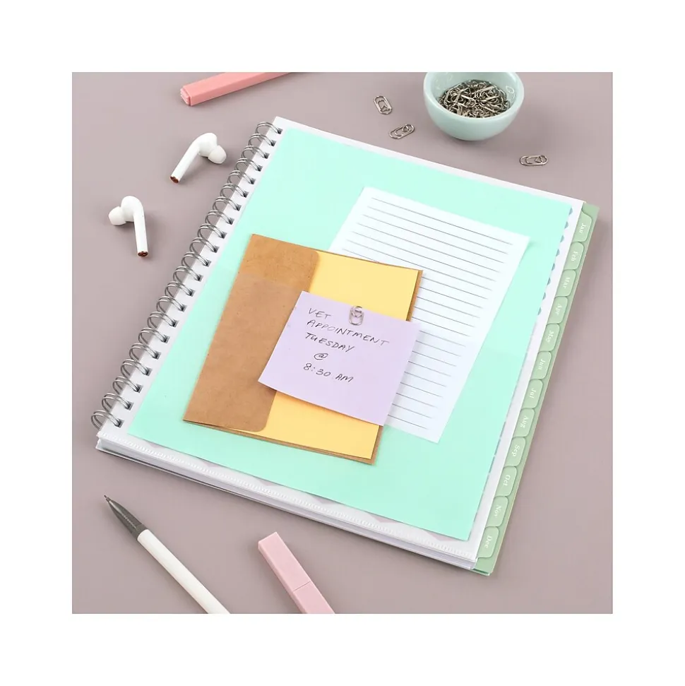 - Tabbed monthly pages help you see your big picture plans in an instant