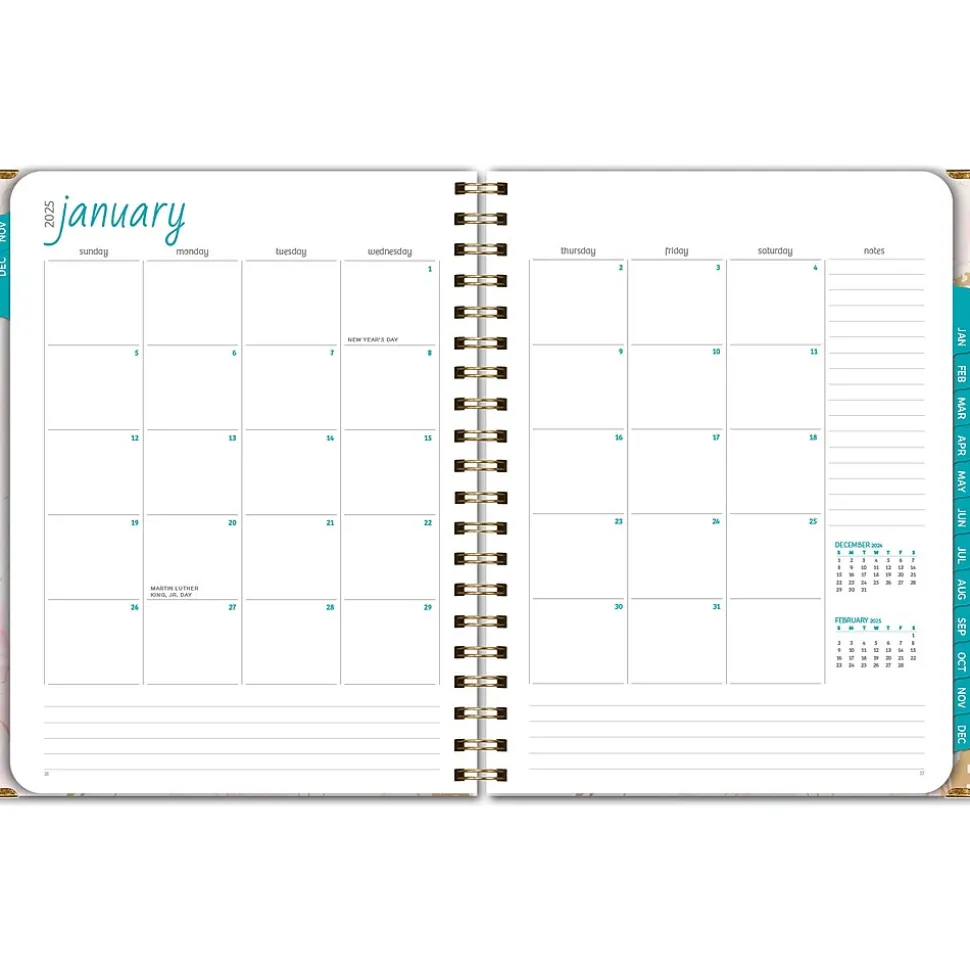 - Offers two-page monthly spreads, each followed by two-page weekly spreads