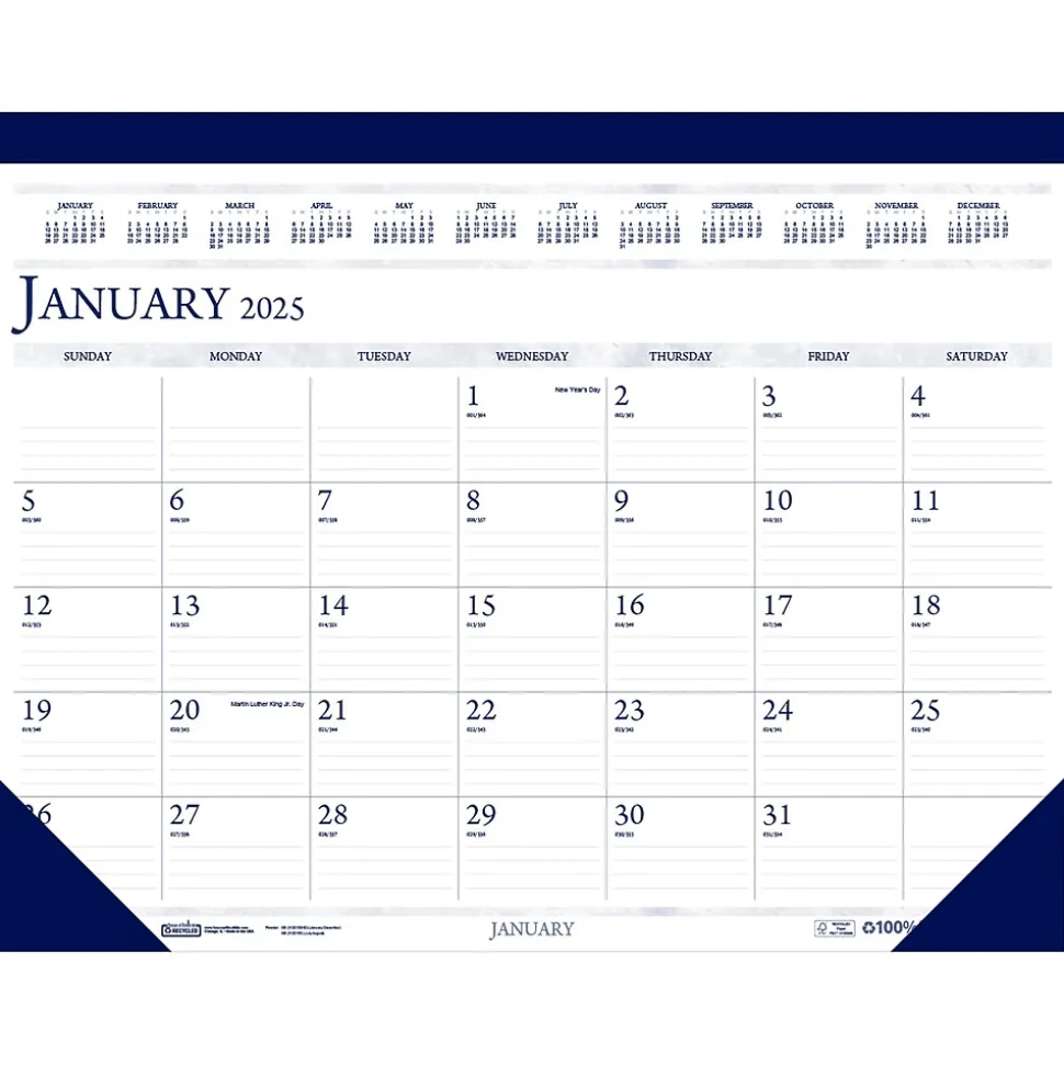 Subtle deep blue and gray printing of this House of Doolittle Classic desk pad calendar are soothing and easy on the eyes.
