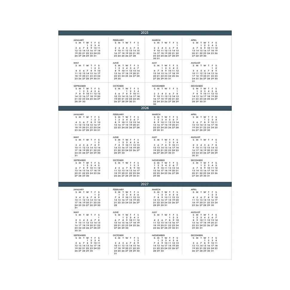 - Three-year calendar reference page for long-range planning