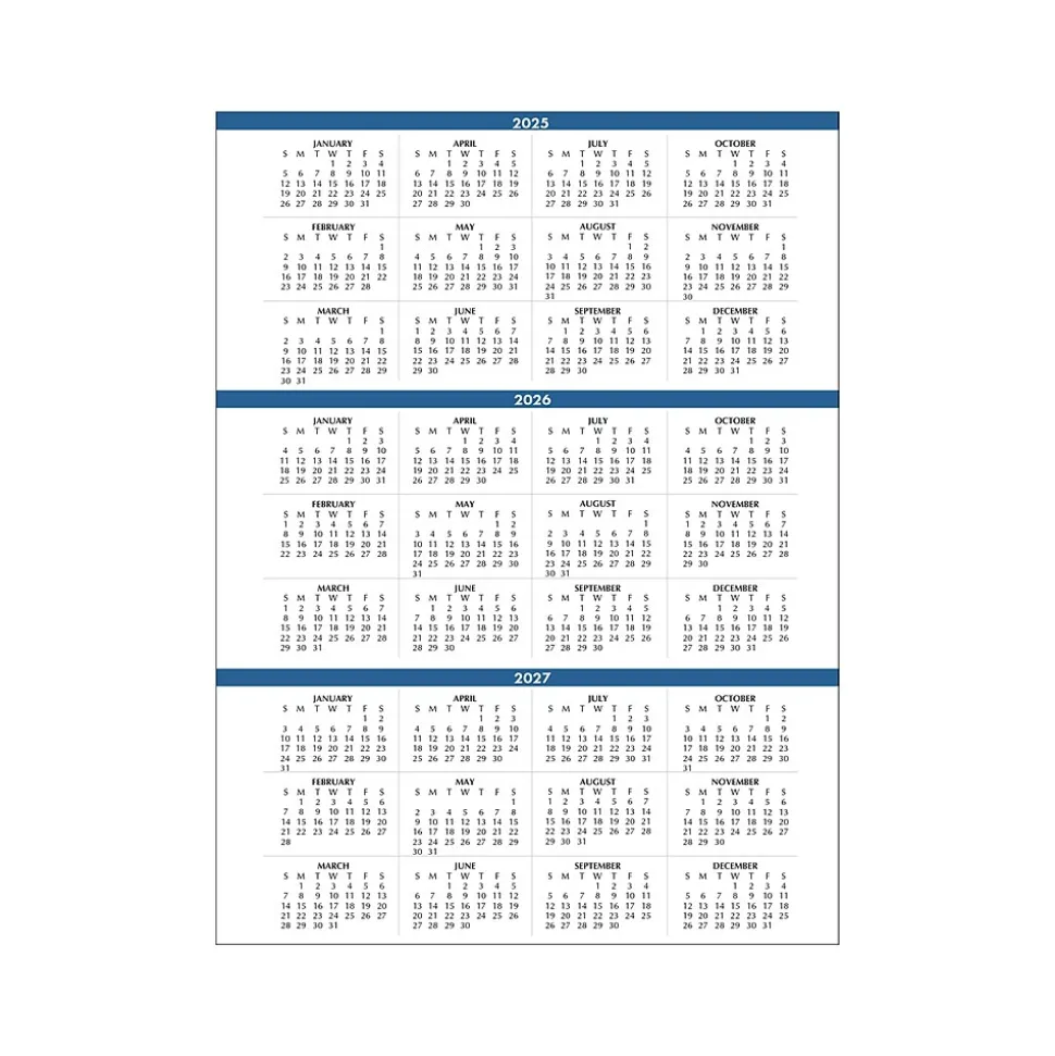 - Weekly and monthly planner covers a 12-month range from January 2025 to December 2025