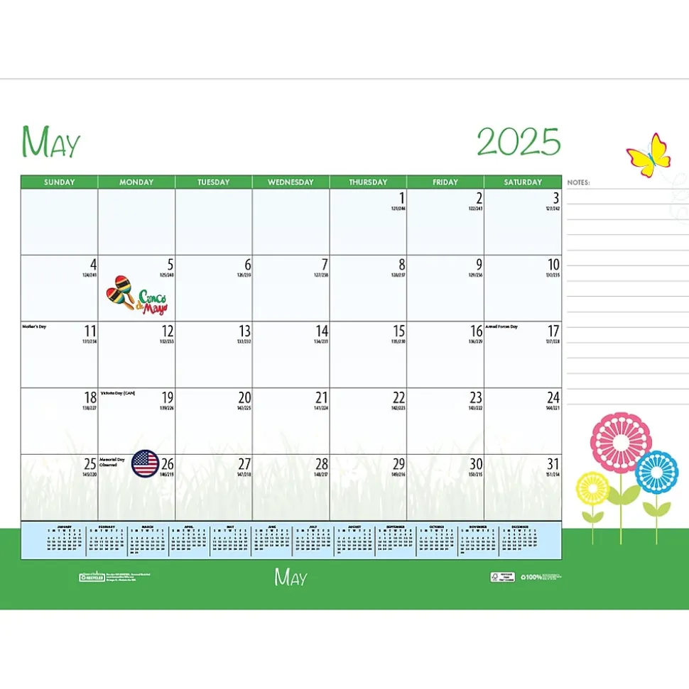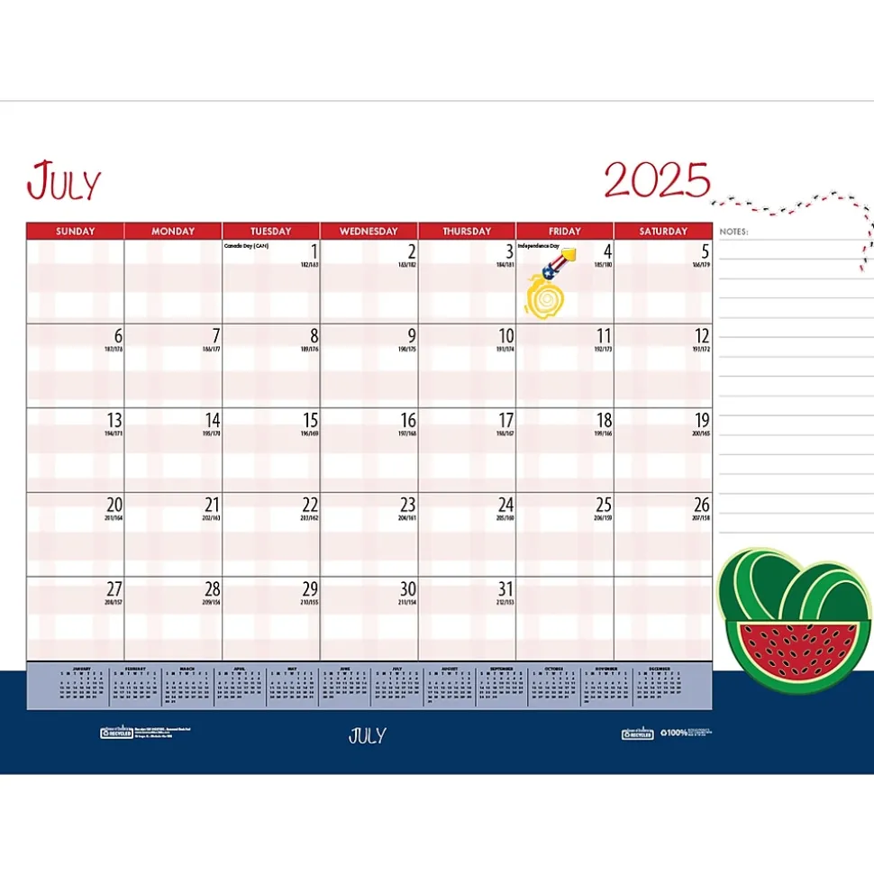 The colorful, enthusiastic Seasonal Holiday Depictions in this desk pad calendar by House of Doolittle highlight each month’s special holiday and season with bright, lively designs throughout the page.